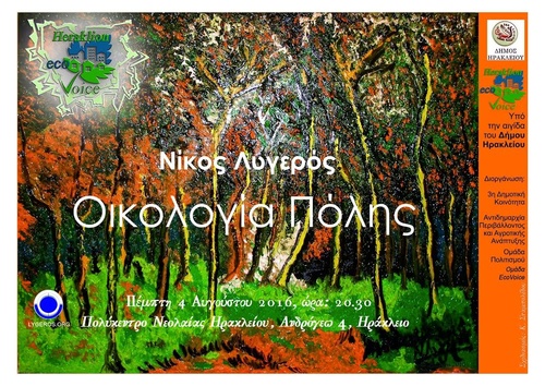Την Πέμπτη 4 Αυγούστου και ώρα 20:30 μ.μ. στο Πολύκεντρο Νεολαίας Ηρακλείου στην Ανδρόγεω 4, θα πραγματοποιηθεί από το Δήμο Ηρακλείου εσπερίδα με θέμα την “ Οικολογία Πόλης”, με έγκριτους ομιλητές σε μία προσπάθεια να δοθεί έμφαση σε μία περισσότερο οικολογική προσέγγιση διαβίωσης στο Αστικό Περιβάλλον. Θα δοθούν σημαντικές προτάσεις και ιδέες που έχουν εφαρμογή από τον κάθε πολίτη αλλά και από τη συνεργασία των πολιτών με τις Τοπικές Δημοτικές Αρχές.