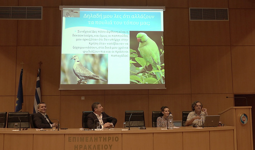 Με επιτυχία πραγματοποιήθηκε χθες, Τρίτη 7 Ιουνίου, η εκδήλωση για το «Αστικό Πράσινο» που διοργάνωσαν οι Αντιδημαρχίες Περιβάλλοντος - Αγροτικής Ανάπτυξης και Καθαριότητας - Ανακύκλωσης και Πρασίνου του Δήμου Ηρακλείου, στα πλαίσια μιας σειράς δράσεων για την Παγκόσμια Ημέρα Περιβάλλοντος (5 Ιουνίου), στην αίθουσα Καστελάκη του Εμπορικού Επιμελητηρίου, παρουσία του Δημάρχου Ηρακλείου κ. Βασίλη Λαμπρινού. Αναλυτικότερα, ο κ. Μιχάλης Μανιαδάκης έχοντας ασχοληθεί εκτενώς με τον Σχεδιασμό Οικολογικών Αγροκτημάτων και Αστικών Εδώδιμων κήπων, μίλησε για την εμπειρία των Αστικών Λαχανόκηπων, ανέλυσε καλές πρακτικές άλλων πόλεων και έκανε σχετικές προτάσεις προσαρμοσμένες στις ανάγκες της πόλης του Ηρακλείου. Η Δασολόγος- Αρχιτέκτονας Τοπίου από τη Διεύθυνση Συντονισμού & Επιθεώρησης Δασών Κρήτης και μέλος του ΓΕΩΤΕΕ κ. Μαρία Κοζυράκη, ανέπτυξε το θέμα «Αστικό Πράσινο και Δημόσιος Χώρος - Η περίπτωση των Ενετικών Τειχών» δίνοντας νέες ιδέες για την χρήση των τειχών ενώ τόνισε την σημαντικότητα του αστικού πρασίνου για την ευημερία των πολιτών. Ο κ. Μιχάλης Δρετάκης, Βιολόγος-Ορνιθολόγος του Μουσείου Φυσικής Ιστορίας Κρήτης αναφέρθηκε στα «Τα πουλιά στην πόλη του Ηρακλείου» δίνοντας έμφαση στη σημασία του αστικού πρασίνου για την αστική ορνιθοπανίδα καταθέτοντας προτάσεις για νέες χρήσεις γης που θα ευεργετήσουν την ανάπτυξη της τοπικής ορνιθοπανίδας. Η εκδήλωση ολοκληρώθηκε με την παρουσίαση της ηλεκτρονικής πλατφόρμας που κατασκευάζεται για την απεικόνιση και διαχείριση των χώρων πρασίνου στην πόλη του Ηρακλείου. Έτσι οι πολίτες θα είναι σε θέση να παρακολουθούν την κατάσταση του πρασίνου στην πόλη, τους χώρους πρασίνου που είναι ήδη υιοθετημένοι και αυτούς που είναι προς υιοθεσία. Η πλατφόρμα αυτή, όπως επισημάνθηκε, πρόκειται να αποτελέσει ένα εξαιρετικό εργαλείο και για την Υπηρεσία Πρασίνου αφού θα μπορεί να διαχειρίζεται άμεσα και γρήγορα τις εκτάσεις του πρασίνου και να βρίσκεται σε άμεση επαφή με τους δημότες.