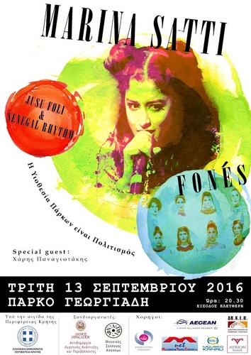 Στο πλαίσιο του θεσμού της «Υιοθεσίας Χώρων Πρασίνου» διοργανώνεται την Τρίτη 13 Σεπτεμβρίου και ώρα 20:30 στο Πάρκο Γεωργιάδη, μία μουσική βραδιά με την ερμηνεύτρια Μαρίνα Σαττί και το acappella group της fonέs