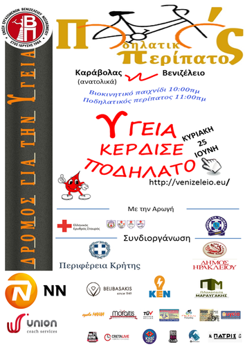 Ο Σύλλογος εργαζομένων «Βενιζελείου» προσκαλεί μικρούς και μεγάλους ποδηλάτες στην εκδήλωση που θα πραγματοποιηθεί την Κυριακή 25 Ιουνίου 2017 με ώρα έναρξης 9.30.