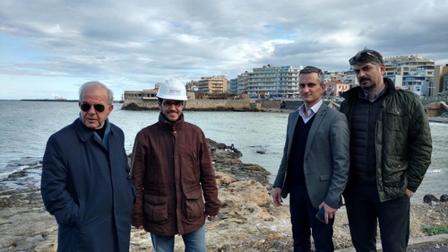Σε αυτοψία στις εργασίες αποκατάστασης του Κόλπου του Δερματά, οι οποίες ξεκίνησαν αυτή την εβδομάδα, προέβη το μεσημέρι της Πέμπτης 12 Ιανουαρίου ο Δήμαρχος Ηρακλείου κ. Βασίλης Λαμπρινός, συνοδευόμενος από τους Αντιδημάρχους, Τεχνικών Έργων κ. Γιάννη Αναστασάκη και Χωροταξικού Σχεδιασμού και Πολεοδομίας κ. Γιάννη Ρασούλη.