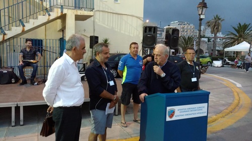 Ο Δήμαρχος, συνοδευόμενος από τον Εντεταλμένο Σύμβουλο Πολιτικής Προστασίας του Δήμου Ηρακλείου Μαρίνο Παττακό, περιηγήθηκε στα περίπτερα του «Εν Πλω» και εν συνεχεία στον σύντομο χαιρετισμό του συνεχάρη τον πρόεδρο του Παγκρητίου Ομίλου Φουσκωτών Σκαφών κ. Γιαβρίδη, τόσο για την συνολική δουλειά του Ομίλου, όσο κυρίως για την ομάδα έρευνας και διάσωσης που έχει δημιουργήσει εδώ και έντεκα χρόνια και η οποία, όπως τόνισε ο Δήμαρχος, έχει λειτουργήσει πολλές φορές σωτήρια!