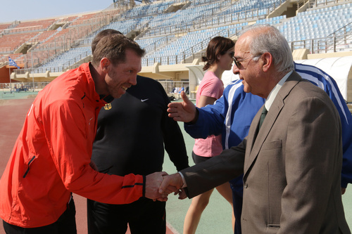 Τους Γερμανούς αθλητές και προπονητές στίβου που έχουν επιλέξει το Παγκρήτιο Στάδιο για την προετοιμασία τους συνάντησε το πρωί της Τετάρτης 5 Απριλίου ο Δήμαρχος Ηρακλείου Βασίλης Λαμπρινός. Ο Δήμαρχος, συνοδευόμενος από τον Αντιδήμαρχο Αθλητισμού Κώστα Βαρδαβά, βρέθηκε στο Παγκρήτιο και καλωσόρισε τους φιλοξενούμενους στο Ηράκλειο, τους ευχήθηκε καλή διαμονή, καλή προετοιμασία αλλά και καλή επάνοδο, αφού όλοι έχουν εκφράσει την ικανοποίησή τους από όσα συνάντησαν στην πόλη μας καθώς και την επιθυμία τους να ξανάρθουν. Στους προπονητές προσέφερε και από μια τσάντα με αναμνηστικά δώρα, η οποία περιείχε κρητικά προϊόντα και ενημερωτικό υλικό για το Ηράκλειο.