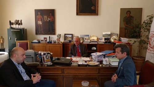 Συνάντηση με τον Γενικό Γραμματέα Αθλητισμού Ιούλιο Συναδινό είχε το πρωί της Δευτέρας στο γραφείο του στην Λότζια, ο Δήμαρχος Ηρακλείου Βασίλης Λαμπρινός. Στην συνάντηση παρευρέθηκε και ο Αντιδήμαρχος Αθλητισμού Κώστας Βαρδαβάς και συζητήθηκαν, μεταξύ άλλων, η ανανέωση του εξοπλισμού στο Παγκρήτιο Στάδιο καθώς η δυνατότητα χρηματοδότησης παρεμβάσεων αναβάθμισης σε ανοιχτούς αθλητικούς χώρους του Δήμου. Ο κ. Συναδινός συμφώνησε ότι εφόσον γίνουν οι ανάλογες μελέτες, μπορεί να χρηματοδοτηθούν άμεσα ορισμένα από αυτά τα έργα. Οι δυο πλευρές θα έχουν νέα επικοινωνία το προσεχές διάστημα, ώστε να προχωρήσει το ζήτημα των παρεμβάσεων στα ανοιχτά γήπεδα όσο πιο γρήγορα γίνεται.