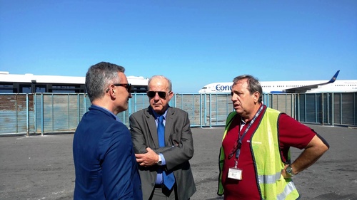 Στη συνέχεια, ο Δήμαρχος, συνοδευόμενος από τον Αντιδήμαρχο Τεχνικών Έργων Γιάννη Αναστασάκη, επισκέφθηκε το αεροδρόμιο προκειμένου να ενημερώσει τον αερολιμενάρχη κ. Γιώργο Πλιάκα για τα αποτελέσματα της συνάντησής του με τον Διευθυντή του ΤΕΘΑ καθώς και για να κάνει αυτοψία στις εργασίες ανακαίνισης του κτιρίου που έχουν ήδη ξεκινήσει.