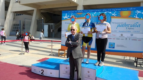 Ο Δήμαρχος, συνοδευόμενος από τον Αντιδήμαρχο Αθλητισμού Κώστα Βαρδαβά, περιηγήθηκε στον περιβάλλοντα χώρο του Σταδίου, συνομίλησε με τον Χρυσό Παραολυμπιονίκη Μανώλη Στεφανουδάκη, τον Περιφερειακό Διευθυντή Εκπαίδευσης Κρήτης Γιώργο Τερζάκη, καθώς και με πολλούς εθελοντές, παιδιά αλλά και τους γονείς τους, ενώ έκανε και την απονομή στις νικήτριες της Ποδηλασίας Δρόμου Κοριτσιών.
