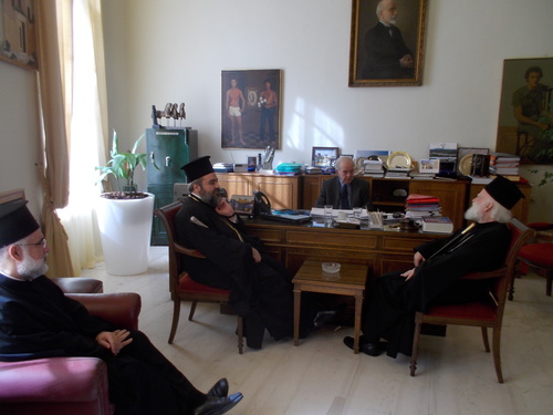 Τον Σεβασμιότατο Αρχιεπίσκοπο Κρήτης κ.κ. Ειρηναίο και τον Σεβασμιότατο Μητροπολίτη Σμύρνης και Αρχιγραμματέα της Ιεράς Συνόδου του Οικουμενικού Πατριαρχείου κ. κ Βαρθολομαίο, υποδέχτηκε σήμερα Δευτέρα 13 Νοεμβρίου στη Λότζια ο Δήμαρχος Ηρακλείου κ. Βασίλης Λαμπρινός.