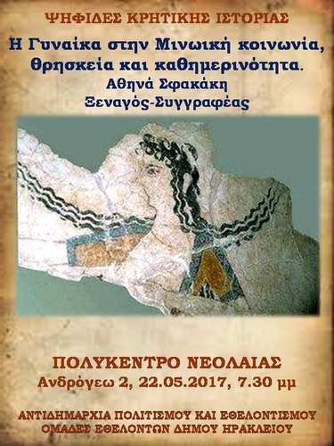 Η 14η παρουσίαση έχει θέμα: «Η Γυναίκα στην Μινωική κοινωνία, θρησκεία και καθημερινότητα», με ομιλήτρια την ξεναγό-συγγραφέα Αθηνά Σφακάκη.
