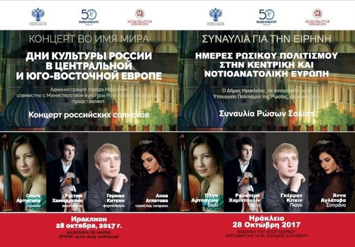 Στο πλαίσιο αυτό το Ηράκλειο επιλέχτηκε ως η μοναδική Ελληνική πόλη που θα φιλοξενήσει φέτος τη συναυλία για την Ειρήνη, η οποία περιλαμβάνεται στον κύκλο εκδηλώσεων με τίτλο «Ημέρες Ρωσικού πολιτισμού στην κεντρική και νοτιοανατολική Ευρώπη».