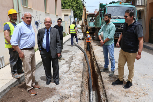 Αυτοψία στις εργασίες αντικατάστασης του υδρευτικού δικτύου στον Μασταμπά πραγματοποίησε το μεσημέρι της Τρίτης 14 Μαΐου ο Δήμαρχος Ηρακλείου Βασίλης Λαμπρινός. Ο Δήμαρχος, συνοδευόμενος από τον πρόεδρο της ΔΕΥΑΗ Γιώργο Βουρεξάκη και τον αντιπρόεδρο Νεκτάριο Ανδρεαδάκη, διαπίστωσε με ικανοποίηση ότι το έργο προχωρά με ταχείς ρυθμούς.