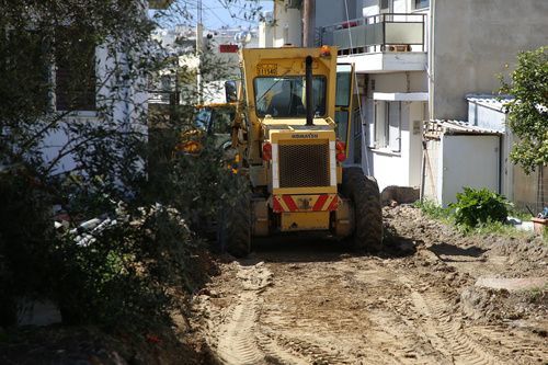 Συνεχίζονται οι εργασίες διάνοιξης στην οδό Αρχιεπισκόπου Ευγενίου, στο πλαίσιο της εφαρμογής του σχεδίου πόλης της περιοχής. Επί της ουσίας πρόκειται για μια ολοκληρωμένη παρέμβαση, η οποία μεταξύ άλλων περιλαμβάνει ασφαλτόστρωση του δρόμου με σύγχρονο, αντιολισθητικό ασφαλτοτάπητα, κατασκευή πεζοδρομίων, ενώ τοποθετούνται και σχάρες ομβρίων.