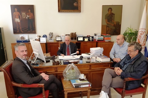 Συνάντηση με τον πρόεδρο του Ομίλου Αντισφαίρισης «Ηράκλειο» Μιχάλη Δελάκη και μέλη του Δ.Σ. είχε το πρωί της Πέμπτης 11ης Απριλίου, στο γραφείο του στη Λότζια, ο Δήμαρχος Ηρακλείου Βασίλης Λαμπρινός.