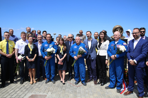 Μάλιστα όταν ολοκληρώθηκε το τελετουργικό, οι κοσμοναύτες παρέμειναν στον χώρο προκειμένου να φωτογραφηθούν με τους θαυμαστές τους και να μοιράσουν αυτόγραφα.