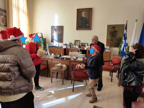 Ακολούθως, τα κάλαντα έψαλλαν στον Δήμαρχο τα αγόρια και τα κορίτσια του Κέντρου Ειδικών Παιδιών «Άγιος Σπυρίδωνας» και οι μικροί μαθητές του 10ου Νηπιαγωγείου Ηρακλείου.