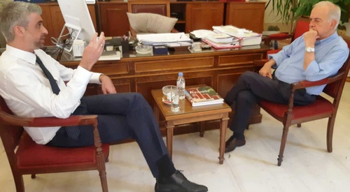 Συνάντηση με τον Πρόεδρο του Οικονομικού Επιμελητηρίου Ελλάδος - Τμήματος Ανατολικής Κρήτης κ. Σταύρο Καρτέρη, είχε το πρωί της Πέμπτης 11 Ιουλίου στο γραφείο του στη Λότζια, ο Δήμαρχος Ηρακλείου Βασίλης Λαμπρινός. Η συνάντηση πραγματοποιήθηκε στο πλαίσιο των επαφών που έχει ξεκινήσει ο Δήμαρχος με τους φορείς της πόλης, ενόψει της νέας αυτοδιοικητικής περιόδου.