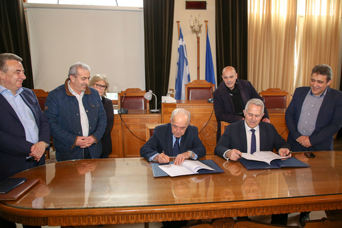 Το σχετικό μνημόνιο υπέγραψαν ο Δήμαρχος Ηρακλείου Βασίλης Λαμπρινός και ο Υπουργός Εθνικής Αμύνης Ευάγγελος Αποστολάκης.