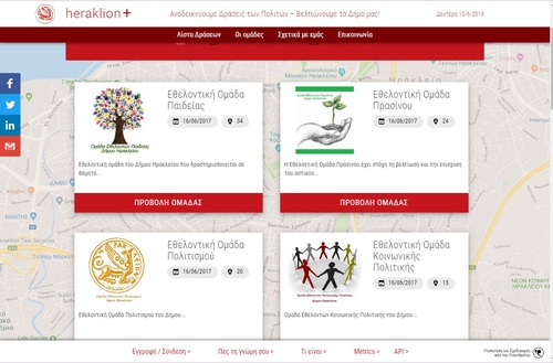 Στον αέρα του διαδικτύου βρίσκεται εδώ και λίγο καιρό η πλατφόρμα εθελοντών του Δήμου Ηρακλείου. Οι επισκέπτες, μπορούν να μπουν στην διεύθυνση www.citizens4heraklion.gr προκειμένου να ενημερωθούν για τις εθελοντικές ομάδες που δραστηριοποιούνται στον Δήμο Ηρακλείου, καθώς και για να επικοινωνήσουν μαζί τους.
