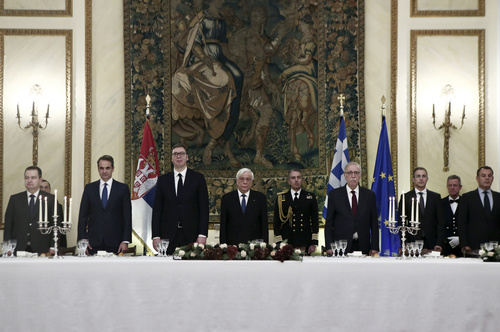 Στο πλαίσιο του δείπνου, ο Δήμαρχος είχε σύντομη συνομιλία τόσο με τον Πρόεδρο της Δημοκρατίας όσο και με τον κ. Βούτσιτς, τον οποίο συνόδευε και ο Πρέσβης της Σερβίας στην Ελλάδα Ντούσαν Σπασόγιεβιτς.