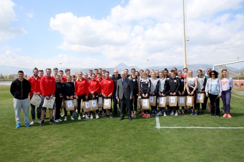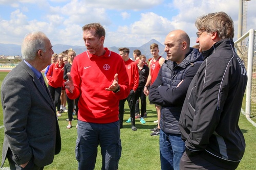 Ο Δήμαρχος, συνοδευόμενος από τον Αντιδήμαρχο Αθλητισμού Κώστα Βαρδαβά, είχε την ευκαιρία να συνομιλήσει με τους φιλοξενούμενους αθλητές και τις αθλήτριες που του εξέφρασαν την ικανοποίησή τους για τις άψογες συνθήκες προπόνησης και διαμονής που έχουν συναντήσει στο Ηράκλειο. Δεν είναι τυχαίο άλλωστε ότι οι δυο γερμανικοί σύλλογοι στους οποίους ανήκουν οι αθλητές, η Μπάγερ Λεβερκούζεν και η Κολωνία, επιλέγουν το Παγκρήτιο Στάδιο για τρίτη συνεχόμενη χρονιά.