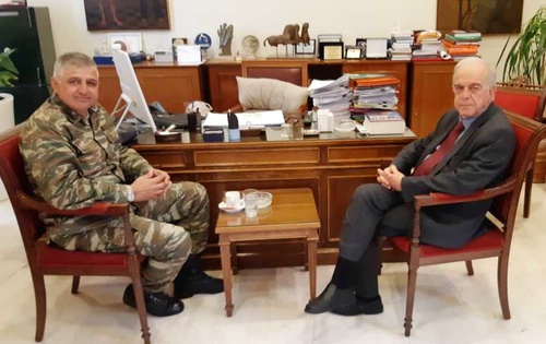 Με το νέο Διοικητή της ΣΕΑΠ, Ταξίαρχο Βασίλη Βασιλειάδη συναντήθηκε σήμερα, Παρασκευή 29 Μαρτίου 2019, στο γραφείο του στη Λότζια ο Δήμαρχος Ηρακλείου Βασίλης Λαμπρινός. Ο νέος Διοικητής της Σχολής Εφέδρων Αξιωματικών Πεζικού επισκέφθηκε τον Δήμαρχο μετά την ανάληψη των νέων του καθηκόντων. Ο Δήμαρχος διαβεβαίωσε ότι η καλή συνεργασία που διαχρονικά υπάρχει ανάμεσα στην Σχολή και τον Δήμο θα συνεχιστεί ενώ του ευχήθηκε καλή επιτυχία στα νέα του καθήκοντα. Από την πλευρά του ο Διοικητής της ΣΕΑΠ ευχαρίστησε τον Δήμαρχο και τον διαβεβαίωσε ότι η συνεργασία Δήμου και Σχολής είναι αγαστή.