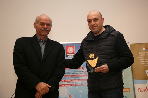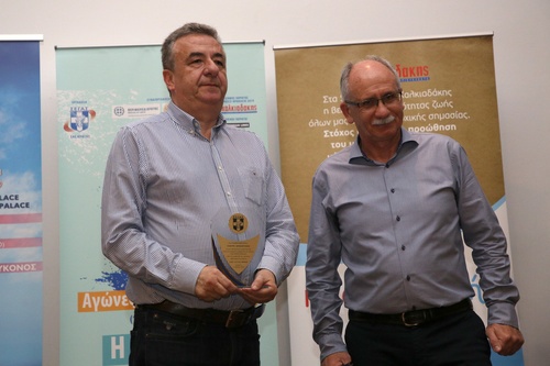 Βραβεύτηκαν ακόμα ο Αντιπεριφερειάρχης Ηρακλείου Ευριπίδης Κουκιαδάκης και ο Αντιδήμαρχος Αθλητισμού Κώστας Βαρδαβάς.