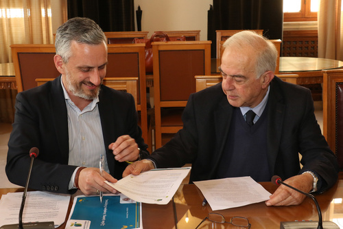 Στην υπογραφή παρευρέθησαν επίσης ο Αντιδήμαρχος Τεχνικών Έργων Γιάννης Αναστασάκης, καθώς και ο πρόεδρος και το μέλος του ενεργειακού cluster Κρήτης Νίκος Παπαδάκης και Αδαμαντία Πικράκη αντίστοιχα και η επιστημονική συνεργάτης του Δήμου Γεώργια Πιλιγκότση.