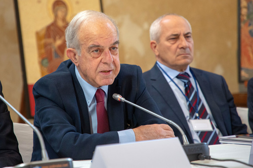 Στον σύντομο χαιρετισμό του ανέφερε μεταξύ άλλων: «Η προσφορά των Πανεπιστημιακών Ιδρυμάτων, αποτελεί ένα θεμελιακό πεδίο της χώρας μας. Στα χρόνια της πολυμέτωπης κρίσεως που βιώνουμε, η πανεπιστημιακή κοινότητα, παρά τις υποστελεχωμένες υπηρεσίες, τα οικονομικά προβλήματα, τα δυσεπίλυτα θέματα της δημοσίας διοικήσεως, που όλοι γνωρίζουμε, στάθηκε στο ύψος που χρειαζόταν η κοινωνία μας, συνέβαλε καθοριστικά στην συνοχή και στην πρόοδό της. Και ευελπιστούμε όλοι, ότι θα επιλυθεί το μεγάλο ζήτημα της αναγκαστικής –για επιβεβλημένους εργασιακούς λόγους– αποδημίας των νέων επιστημόνων μας, που η εξαιρετική συγκρότησή τους, οφείλεται στην εκπαιδευτική επάρκεια και ποιότητα των πανεπιστημιακών μας διδασκάλων.