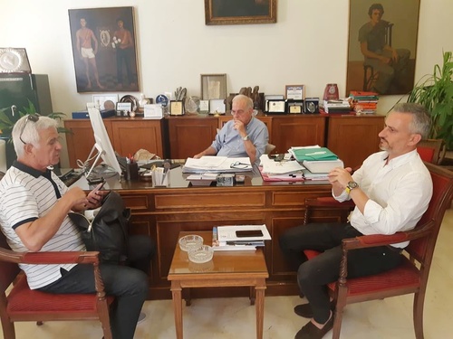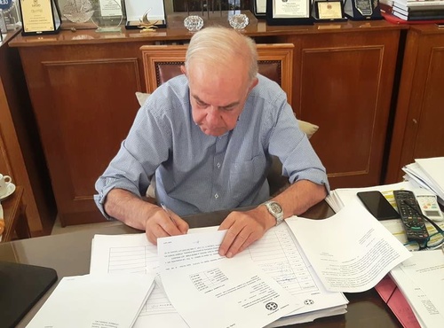 Υπεγράφη σήμερα, Δευτέρα 19 Αυγούστου 2019 στην Λότζια η σύμβαση για την «Επισκευή, συντήρηση σχολικών κτηρίων και αύλειων χώρων του Δήμου Ηρακλείου και λοιπές δράσεις». Την σύμβαση υπέγραψε ο Δήμαρχος Ηρακλείου Βασίλης Λαμπρινός με τον εκπρόσωπο της αναδόχου εταιρίας παρουσία του Αντιδημάρχου Τεχνικών Έργων Γιάννη Αναστασάκη.