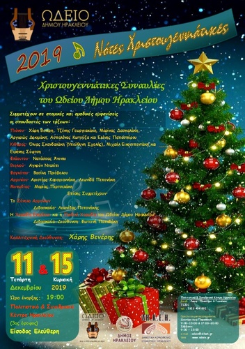 Δύο χριστουγεννιάτικες συναυλίες θα δώσουν οι σπουδαστές του Ωδείου Δήμου Ηρακλείου, απόψε, Τετάρτη 11 Δεκεμβρίου και την Κυριακή 15 Δεκεμβρίου στην αίθουσα προβών της Συμφωνικής Ορχήστρας Νέων Κρήτης Δήμου Ηρακλείου, στο Πολιτιστικό Συνεδριακό Κέντρο (3ος όροφος). Οι συναυλίες θα ξεκινήσουν στις 19:00 το απόγευμα και η είσοδος είναι ελεύθερη για το κοινό.