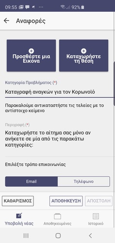 • Δυνατότητα υποβολής αιτημάτων από τους Δημότες για την καταγραφή αναγκών για κορωνοϊό και αιτήματα για ψυχολογική υποστήριξη