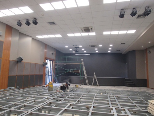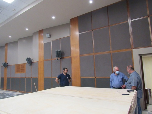 Η σύμβαση που υπεγράφη με την ΔΕΠΑΝΑΛ τον Απρίλιο προέβλεπε τη δημιουργία αναβαθμών για την τοποθέτηση των καθισμάτων - που φαίνεται να προχωρούν με γοργούς ρυθμούς- την επένδυση του υπερυψωμένου πατώματος και των αναβαθμών, την αποξήλωση υφιστάμενων καθισμάτων, την αντικατάσταση του υφιστάμενου υφάσματος των καθισμάτων με ηχοαπορροφητική επένδυση και την επανατοποθέτησή τους στις νέες θέσεις πάνω στους αναβαθμούς. Επίσης προβλέπεται η καθαίρεση της υφιστάμενης ψευδοροφής της αίθουσας και τοποθέτηση νέας και τέλος η επένδυση με laminate του πατώματος της αίθουσας.
