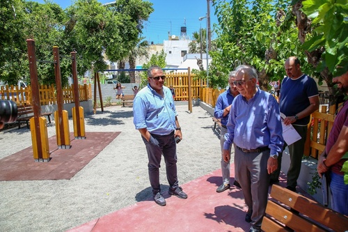 Την νέα παιδική χαρά στην συμβολή των οδών Κανάρη και Ικάρου, στην περιοχή του Κατσαμπά επισκέφθηκε το μεσημέρι της Τετάρτης 15 Ιουλίου ο Δήμαρχος Ηρακλείου Βασίλης Λαμπρινός, συνοδευόμενος από τον Αντιδήμαρχο Τεχνικών Έργων Γιάννη Αναστασάκη.