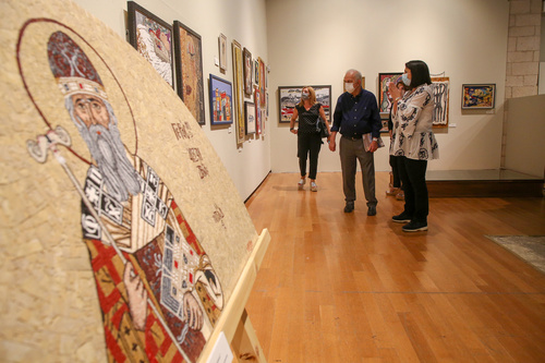 Ο Δήμαρχος, συνοδευόμενος από την Αντιδήμαρχο Οικονομικών Μαρία Καναβάκη ξεναγήθηκε από τους διοργανωτές στην Έκθεση και συνεχάρη την υπεύθυνη του εργαστηρίου ψηφιδωτών για το πολύ καλό αποτέλεσμα.