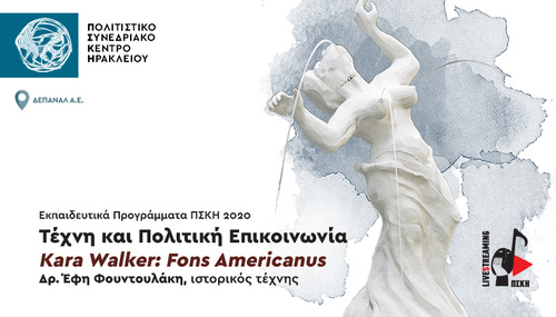 Μετά την απολύτως επιτυχημένη πρεμιέρα του Σαββάτου 21 Νοεμβρίου, με τη συναυλία του Ζαχαρία Σπυριδάκη, τα Live Streaming του Πολιτιστικού Συνεδριακού Κέντρου Ηρακλείου συνεχίζονται την Πέμπτη 26 Νοεμβρίου, στις 19:00, με την μετάδοση από την επίσημη ιστοσελίδα του ΠΣΚΗ www.cccc.gr/gr/live-streaming της ομιλίας "Τέχνη και Πολιτική Επικοινωνία | Kara Walker: Fons Americanus", με εισηγήτρια την ιστορικό τέχνης, Δρ. Έφη Φουντουλάκη.