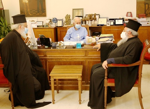 Με τους Μητροπολίτες Ρεθύμνης και Αυλοποτάμου κ. Ευγένιο και Αρκαλοχωρίου, Καστελίου και Βιάνου κ. Ανδρέα καθώς και με τον Υπογραμματέα της Ιεράς Επαρχιακής Συνόδου της Εκκλησίας της Κρήτης Αρχιμανδρίτη Νήφωνα Βασιλάκη συναντήθηκε σήμερα, Τετάρτη 12 Αυγούστου στη Λότζια ο Δήμαρχος Ηρακλείου Βασίλης Λαμπρινός.