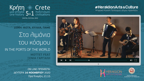 Οι Mottet και η Ξένια Γαργάλη έρχονται στο ψηφιακό κανάλι πολιτισμού του Δήμου Ηρακλείου Heraklion Arts & Culture και θα μας ταξιδέψουν με υπέροχες μελωδίες στα λιμάνια του κόσμου!