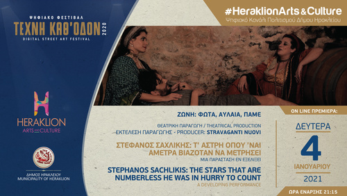 Με τη θεατρική παράσταση “Στέφανος Σαχλίκης: "Τ’ άστρη οπού ’ναι άμετρα βιαζόταν να μετρήσει" - Μια παράσταση εν εξελίξει” από τους Stravaganti NUOVI συνεχίζονται οι προβολές στο ψηφιακό κάναλι πολιτισμού του Δήμου Ηρακλείου, Heraklion Arts and Culture!
