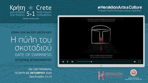 Το ιστορικό ντοκιμαντέρ με τίτλο «Η πύλη του σκοταδιού» θα προβληθεί την Τετάρτη 21 Οκτωβρίου 2020 στις 21:15 στο ψηφιακό κανάλι πολιτισμού του Δήμου Ηρακλείου. Την on line πρεμιέρα μπορείτε να την παρακολουθήσετε στον παρακάτω σύνδεσμο: https://bit.ly/35gFumw