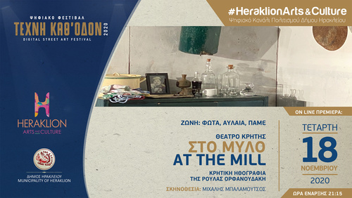 Η θεατρική παράσταση «Στο Μύλο» έρχεται από το Θέατρο Κρήτης στο ψηφιακό κανάλι πολιτισμού του Δήμου Ηρακλείου, Heraklion Arts & Culture, την Τετάρτη 18 Νοεμβρίου 2020 στις 21:15.