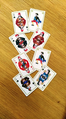 Εδώ αναβιώνουν οι ήρωες της Επανάστασης με χαρακτηριστικές φιγούρες της τράπουλας (ρηγάδες, βαλέδες και ντάμες) σε σχεδιασμό από τη ζωγράφο Μάλη Χανιωτάκη. Αυθεντικά παιγνιόχαρτα της τράπουλας του 1829 φυλάσσονται στο Εθνικό Ιστορικό Μουσείο.