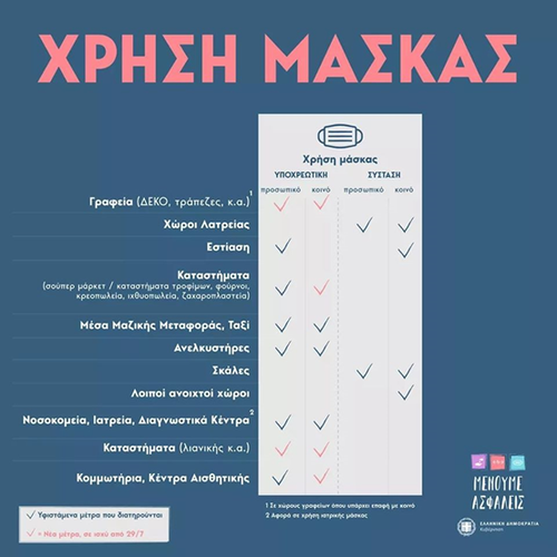 Σε ποιους χώρους είναι υποχρεωτική η χρήση μάσκας: