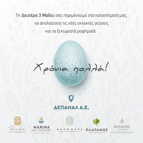 «Με μεγάλη χαρά, ανακοινώνουμε την επανέναρξη της λειτουργίας των καταστημάτων μας που αποτελούν σημεία συνάντησης για την πόλη του Ηρακλείου. Το προηγούμενο διάστημα καταφέραμε να προετοιμαστούμε κατάλληλα κι είμαστε πλέον πανέτοιμοι, με την εφαρμογή των αυστηρών υγειονομικών πρωτοκόλλων, να υποδεχτούμε ξανά στα στέκια της πόλης όλο τον κόσμο, όπως του αξίζει: Με καλούδια από παραδοσιακούς Γυναικείους Συνεταιρισμούς του τόπου μας, με εκλεκτά προϊόντα από Κρητικούς παραγωγούς, με άριστο επίπεδο εξυπηρέτησης!