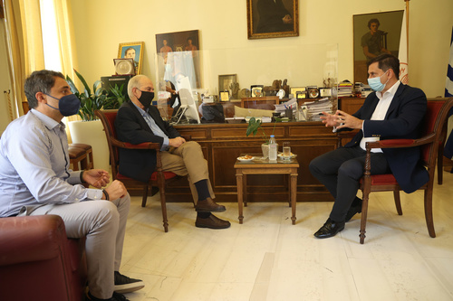 Ο υπουργός ενημερώθηκε από τον Δήμαρχο για την κατάσταση που επικρατεί στο Ηράκλειο σχετικά με τα κρούσματα κορονοϊού αλλά και για τις δράσεις που πραγματοποιεί ο Δήμος αναφορικά με την ενημέρωση των πολιτών και την επιτάχυνση των εμβολιασμών τόσο στην πόλη όσο και στην ενδοχώρα. Στο πλαίσιο των δράσεων ο Δήμαρχος παρουσίασε και το σποτ του Δήμου Ηρακλείου το οποίο προτρέπει τους πολίτες να εμβολιαστούν.