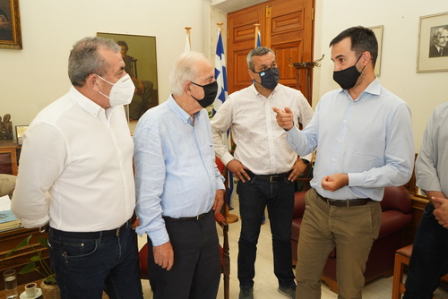 Συζητήθηκαν σε καλό κλίμα θέματα που αφορούν στην διαχείριση της πανδημίας, τις νέες μεταλλάξεις του κορωνοϊού, την πορεία των εμβολιασμών αλλά και σε σημαντικά έργα τα οποία βρίσκονται σε εξέλιξη στον Δήμο Ηρακλείου και είχαν αρχικά ενταχθεί στον «Φιλόδημο» επί της Υπουργίας του κ. Χαρίτση, όπως η αντικατάσταση του πεπαλαιωμένου δικτύου ύδρευσης. Ειδική μνεία έγινε και στο Ειδικό Χωρικό της Νέας Αλικαρνασσού, καθώς ο κ. Χαρίτσης ενημερώθηκε για τις προτάσεις του Δήμου Ηρακλείου σχετικά με την αξιοποίηση του χώρου που λειτουργεί σήμερα το αεροδρόμιο «Νίκος Καζαντζάκης» όταν ξεκινήσει την λειτουργία του το νέο αεροδρόμιο στο Καστέλι.