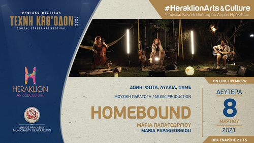 Με την συναυλία της Μαρίας Παπαγεωργίου και του σχήματος HomeΒound συνεχίζονται την Δευτέρα 8 Μαρτίου 2021 στις 21.15, οι προβολές στο ψηφιακό κανάλι πολιτισμού του Δήμου Ηρακλείου - Heraklion Arts & Culture.