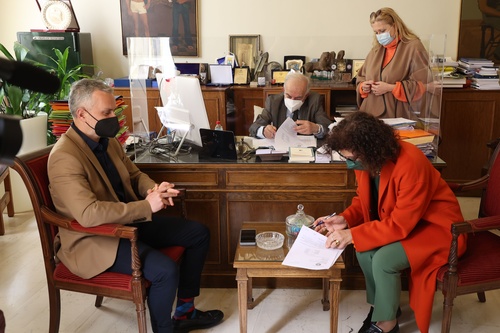 Υπεγράφη το πρωί της Δευτέρας 4 Απριλίου από τον Δήμαρχο Ηρακλείου Βασίλη Λαμπρινό ,παρουσία του Αντιδημάρχου Τεχνικών Έργων Γιάννη Αναστασάκη, η πρώτη από τις δέκα συνολικά συμβάσεις για την ασφαλτόστρωση φθαρμένων δρόμων που βρίσκονται στο Δήμο Ηρακλείου.