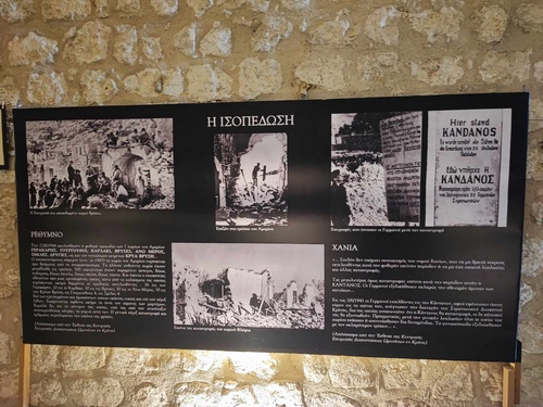 Με επιτυχία πραγματοποιήθηκαν το βράδυ της Τρίτης 19 Σεπτεμβρίου τα εγκαίνια της έκθεσης «Οι θηριωδίες της ναζιστικής Γερμανίας στην Κρήτη», στο Κηποθέατρο «Μάνος Χατζιδάκις». Η έκθεση θα διαρκέσει μέχρι τις 30 Σεπτεμβρίου και διοργανώνεται στο πλαίσιο των εκδηλώσεων για 80η επέτειο του Ολοκαυτώματος της Βιάννου και των χωριών της Δυτικής Ιεράπετρας, από τον Δήμο Ηρακλείου, την Περιφέρεια Κρήτης, την Ένωση Θυμάτων Ολοκαυτώματος Δήμου Βιάννου, τους Δήμους Βιάννου και Μαλεβιζίου, την ΕΛΜΕ Νομού Ηρακλείου, υπό την αιγίδα του Εθνικού Συμβουλίου Διεκδίκησης των Οφειλών της Γερμανίας προς την Ελλάδα. Περιλαμβάνει μία νέα σύνθεση του αρχειακού υλικού της Έκθεσης της Κεντρικής Επιτροπής Διαπιστώσεως Ωμοτήτων στη Μεγαλόνησο, που φέρει τις υπογραφές των μεγάλων διανοούμενων Νίκου Καζαντζάκη, Ιωάννη Καλιτσουνάκη, Ιωάννη Κακριδή και αποτυπώθηκε φωτογραφικά από τον Κωνσταντίνο Κουτουλάκη.