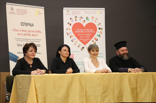 Παράλληλα, την Τρίτη 5 Δεκεμβρίου (17:00) στο Κτίριο Ανδρόγεω (αίθουσα «Μανόλης Καρέλλης», θα πραγματοποιηθεί ΕΣΠΕΡΙΔΑ με θέμα: «Όταν ο πόνος γίνεται ελπίδα… και το σκοτάδι, φως!». Στην εκδήλωση θα παρουσιάσουν το έργο τους ο Παγκρήτιος Σύλλογος Γονέων και Φίλων Παιδιών με Νεοπλασία «Ηλιαχτίδα» και ο Παγκρήτιος Σύνδεσμος Εθελοντών Αιμοδοτών & Δωρητών Οργάνων Σώματος «Αιματοκρήτης». Η εκδήλωση γίνεται με την Υποστήριξη της Ιεράς Αρχιεπισκοπής Κρήτης και του Παγκρήτιου Συνδέσμου «ΑιματοΚρήτης».