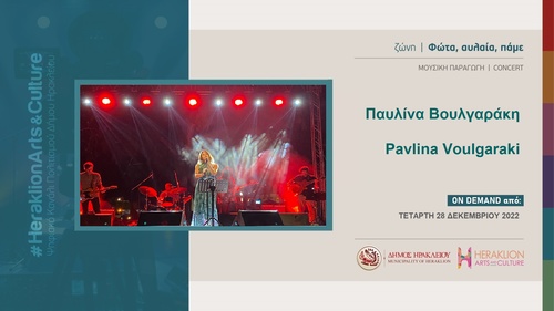 Μια εξαιρετική συναυλία με την Παυλίνα Βουλγαράκη είναι πλέον διαθέσιμη στο διαδικτυακό κανάλι πολιτισμού του Δήμου Ηρακλείου - Heraklion Arts and Culture και στον σύνδεσμο: https://youtu.be/lvBjbFJT1fc