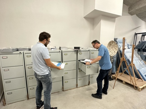 Εν συνεχεία επισκέφθηκαν τα αρχεία της Δημοτικής Πινακοθήκης μαζί με την υπεύθυνη της συλλογής των έργων τέχνης κ. Μαριάννα Γιαλύτη και ξεκίνησαν την δύσκολη δουλειά της ψηφιοποίησης που θα συνεχιστεί μέχρι το τέλος του 2023 όταν και αναμένεται να ολοκληρωθεί.